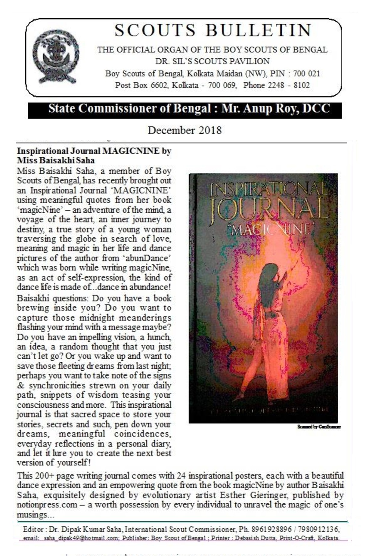 The magicNine inspirational journal featured on the Bengal Scouts Bulletin, edited by Dr. Dipak Kumar Saha