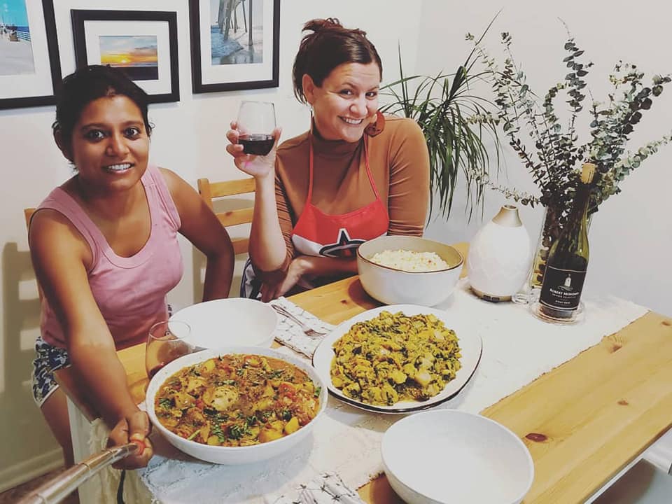 I had prepared Indian dinner for us, chicken curry, mixed veggies and fried rice, accompanied by Shay’s red wine