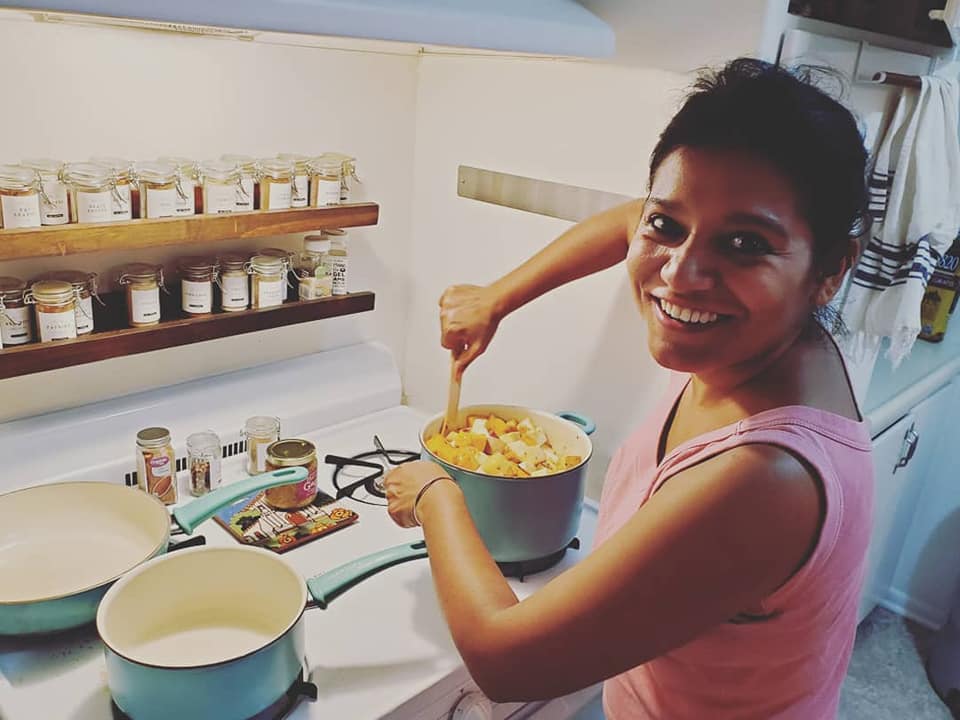 I was preparing Indian dinner for us, chicken curry, mixed veggies and fried rice, accompanied by Shay’s red wine