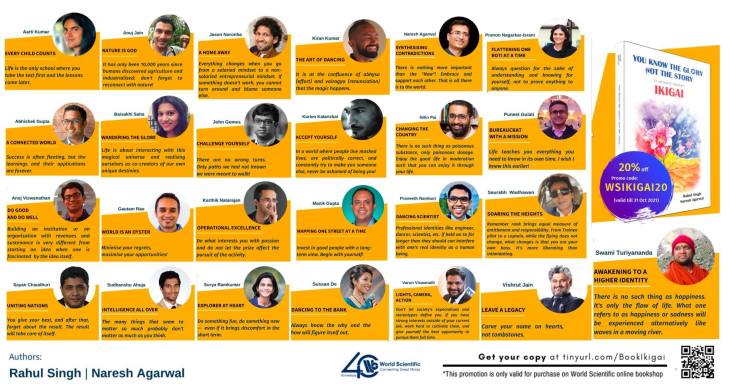 Obtenga tu copia del libro en Amazon o directamente en la tienda de la editorial World Scientific con el código de promoción WSIKIGAI20 para obtener un 20% de descuento hasta el 31 de octubre de 2021. Obtenga la versión india en Amazon o en Indus Publishing con un 8% de descuento, por un precio de oferta de solo ₹300. Si te encuentras en Singapur, en la India o en cualquier otro lugar del mundo, ¡debes aprovechar esta oferta ahora e inspírarte de verdad!