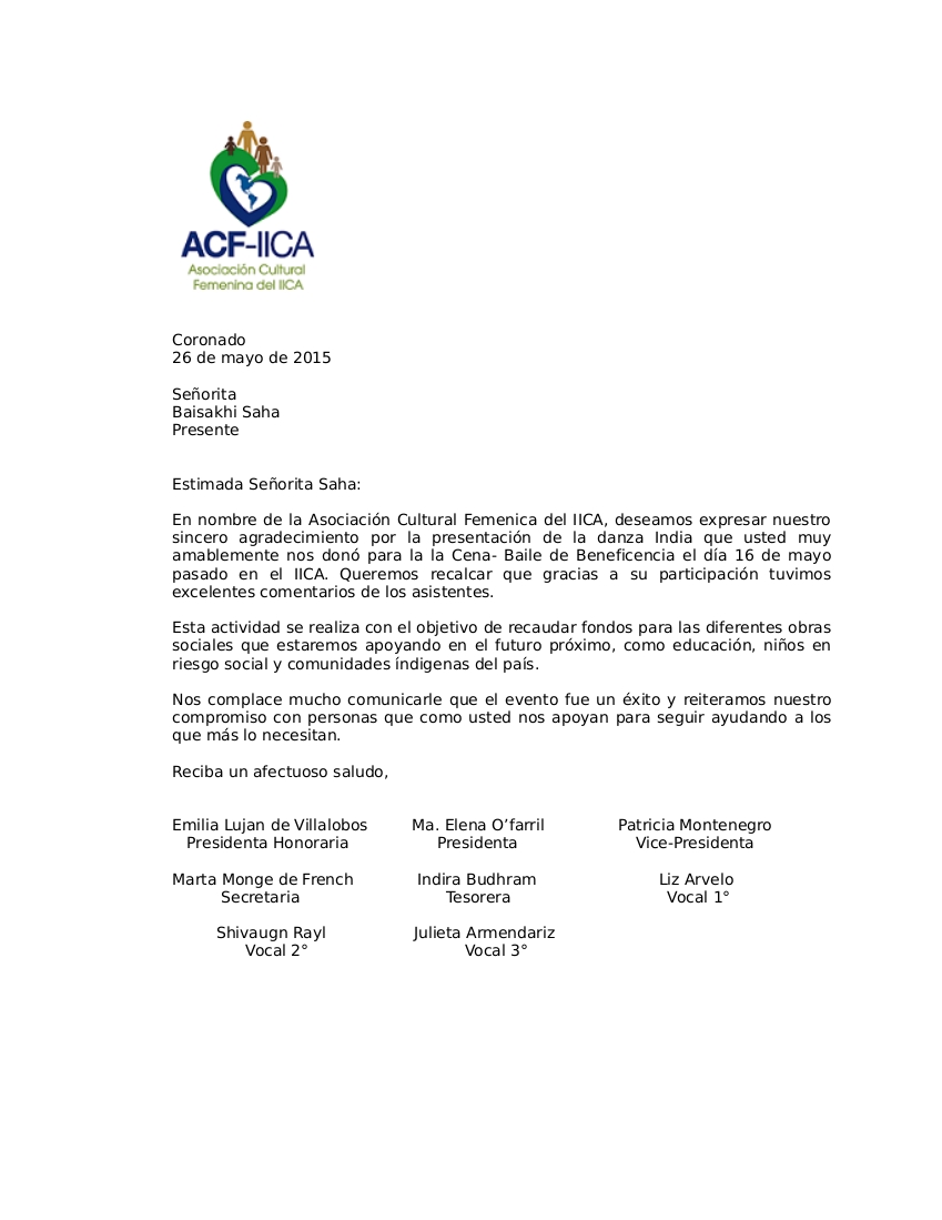 Appreciation letter, IICA