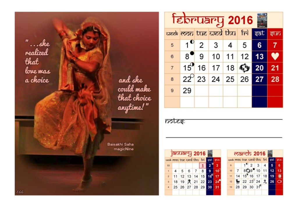 The calendar is available for sale on Amazon internationally until the end of April 2016 at amazon.com/shops/baisakhisaha.